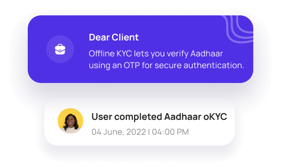 Notify users instantly about their verification status. If needed, request additional details to complete authentication and prevent verification failures.